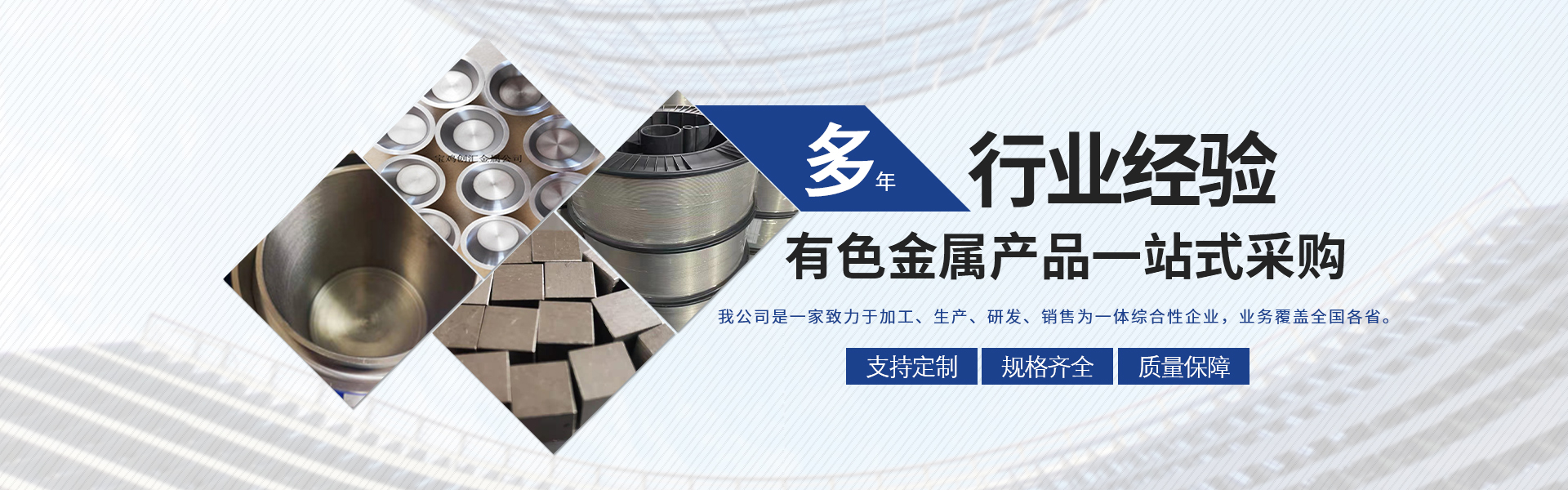 寶雞市創(chuàng)匯金屬材料有限公司,位于有“中國鈦谷”之稱寶雞寶鈦路南段,這里也是國家重點(diǎn)支持和扶持的有色金屬材料資源產(chǎn)業(yè)基地,我司專業(yè)從事鈦、鋯、鉿、鎳鉻、鎢鉬、鉭鈮、合金材料、復(fù)合材料,板、棒、絲、管、箔材等,設(shè)備制造,金屬制品機(jī)械加工銷售。